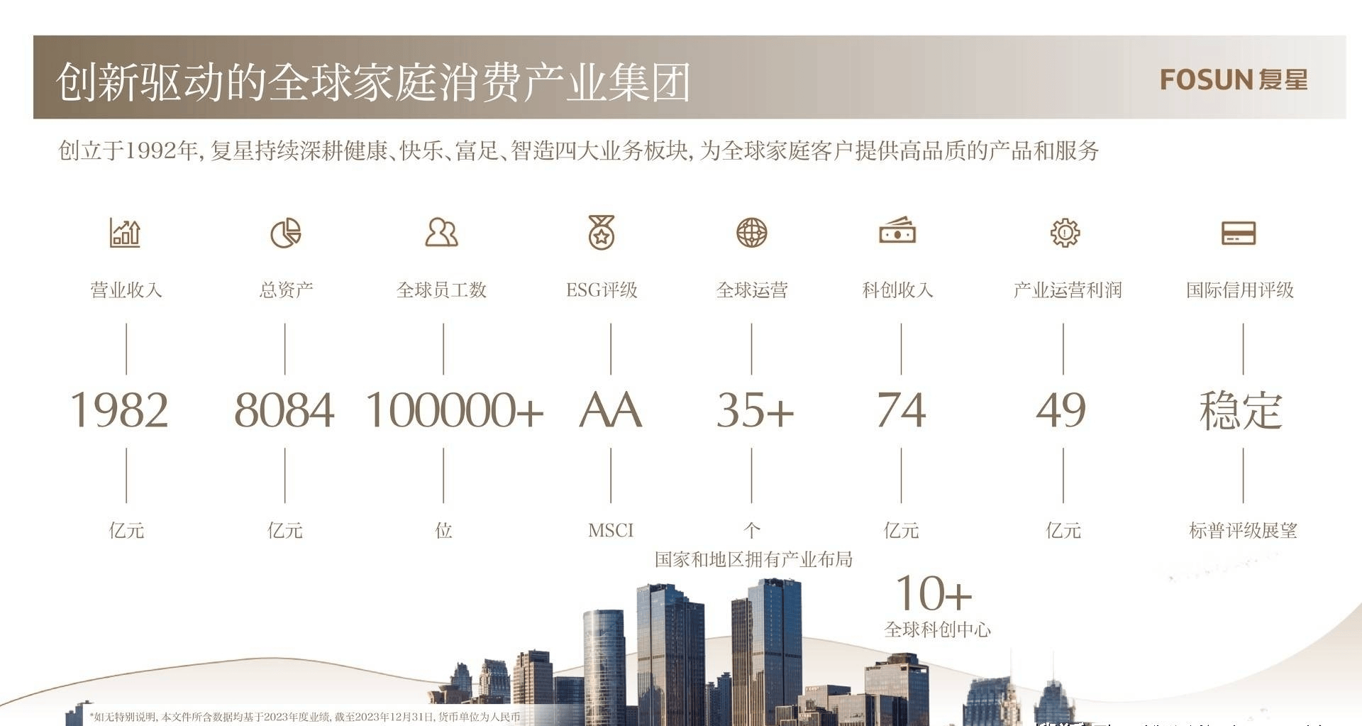 复星持续深耕健康、快乐、富足、智造四大业务板块,为全球家庭客户提供高品质的产品和服务