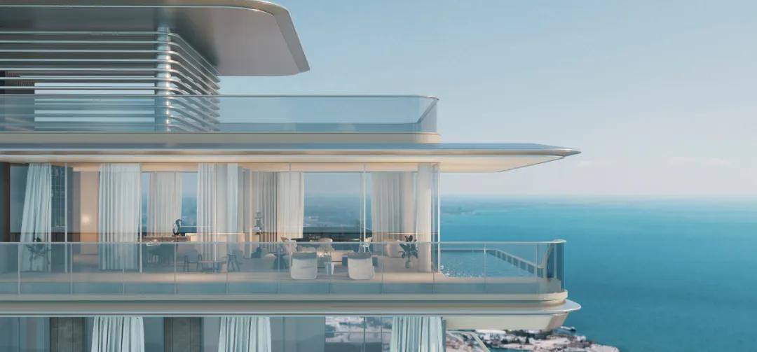 基于地中海风情的项目定位,汲取海洋和天空的灵感,以海洋气质的曲面美学划定湾区天际线。