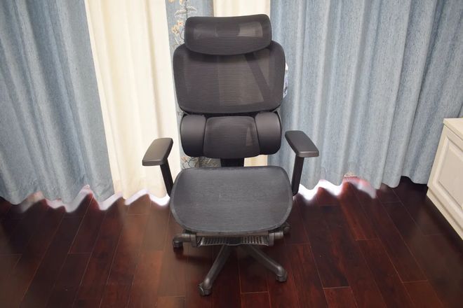 支撑性:整体支撑偏扎实路线。椅背的大型支架存在感很强,给人的第一感觉就是稳。网布张力均匀,不是软塌型,坐久了也不容易松垮。坐垫对臀部和大腿的承托比较实在,不会一坐就陷下去,长时间办公时身体不容易往下塌。